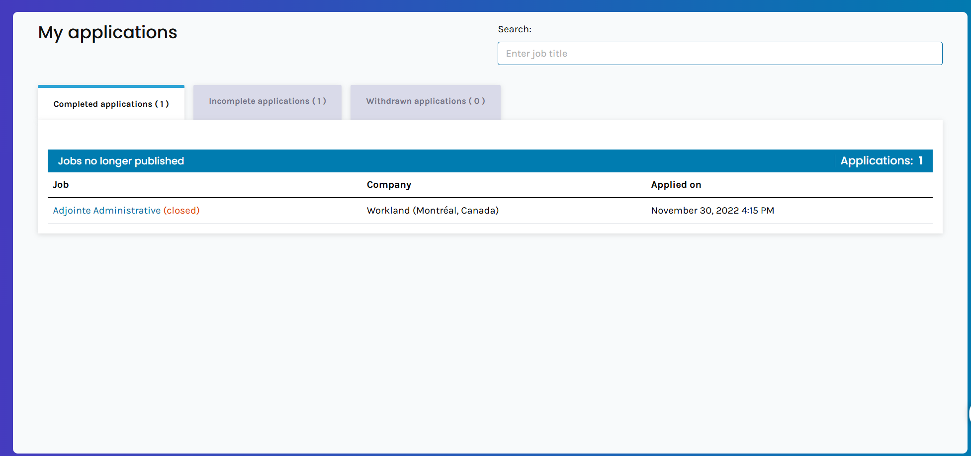 In the Jobs applied section, you will find the list of jobs you have successfully applied for, as well as those with incomplete applications.