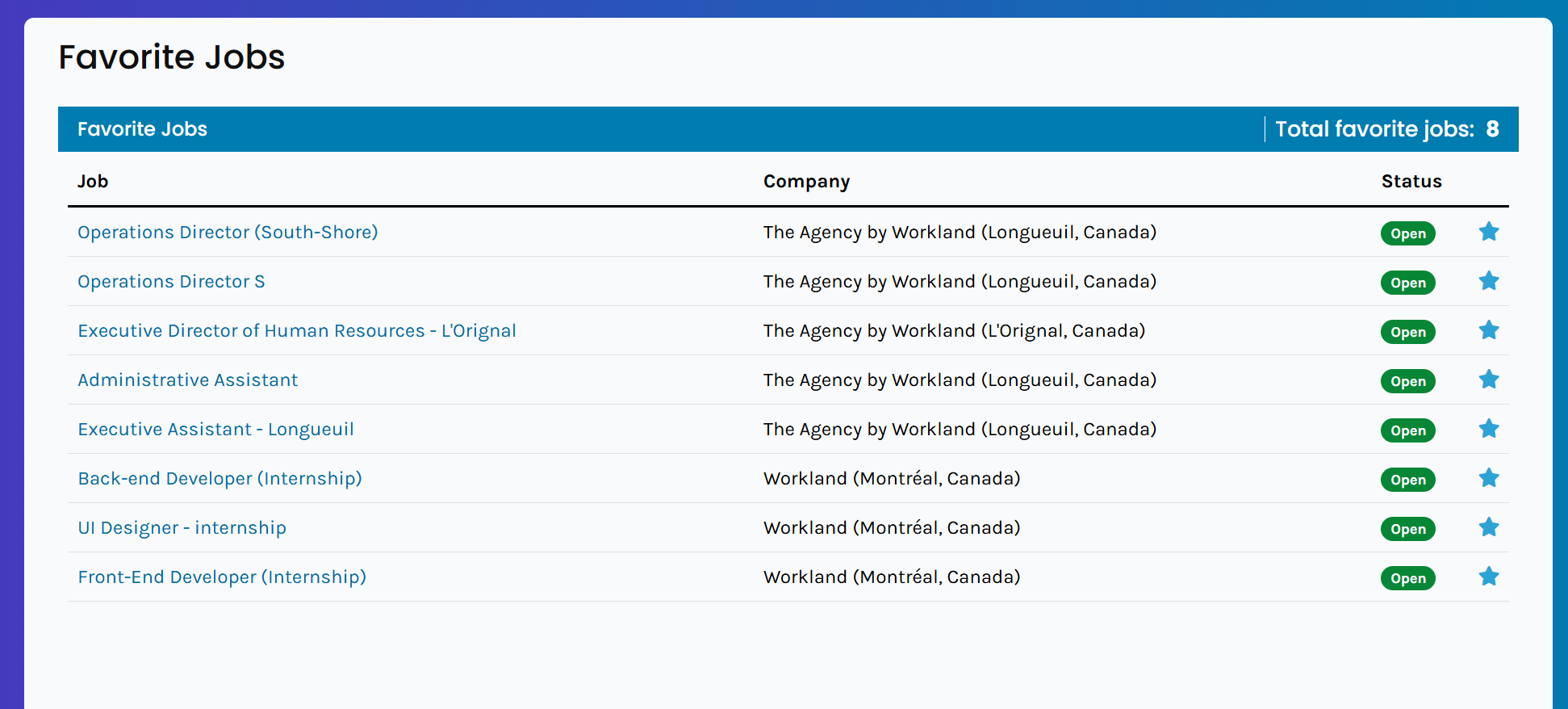 4. Click back to your candidate portal, go into the section and select "Favorite Jobs". Please refresh if you don't see any.