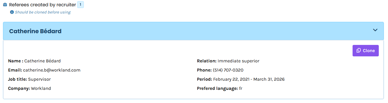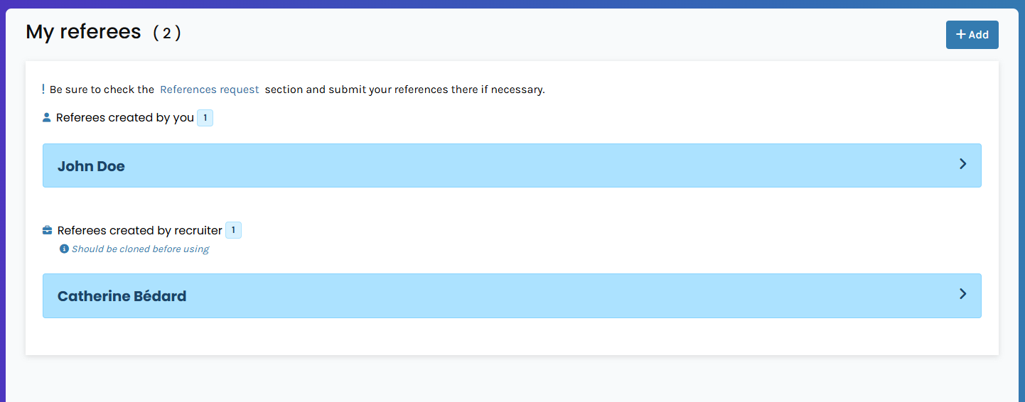 If the recruiter created a referee for you, a copy will be added in My Referees under "Referees created by recruiter".