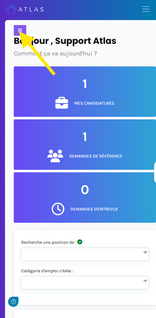 Si, après vous être connecté(e) à votre portail ATLAS, celui-ci apparaît vide, veuillez vérifier que vous utilisez la même adresse e-mail que celle à laquelle la demande de l’employeur a été envoyée.