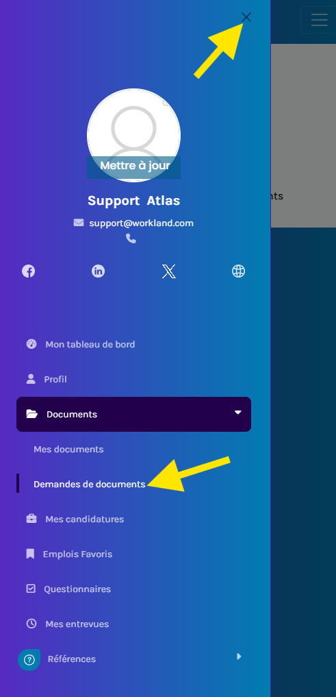 Connectez-vous à votre portail candidat sur atlas.workland.com.1-Mes documents: